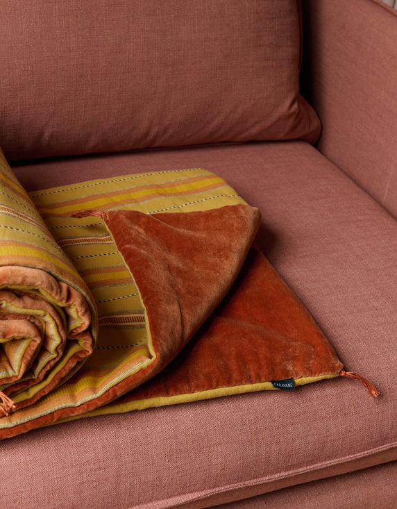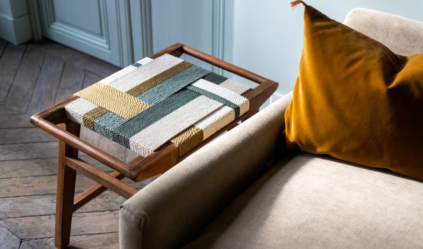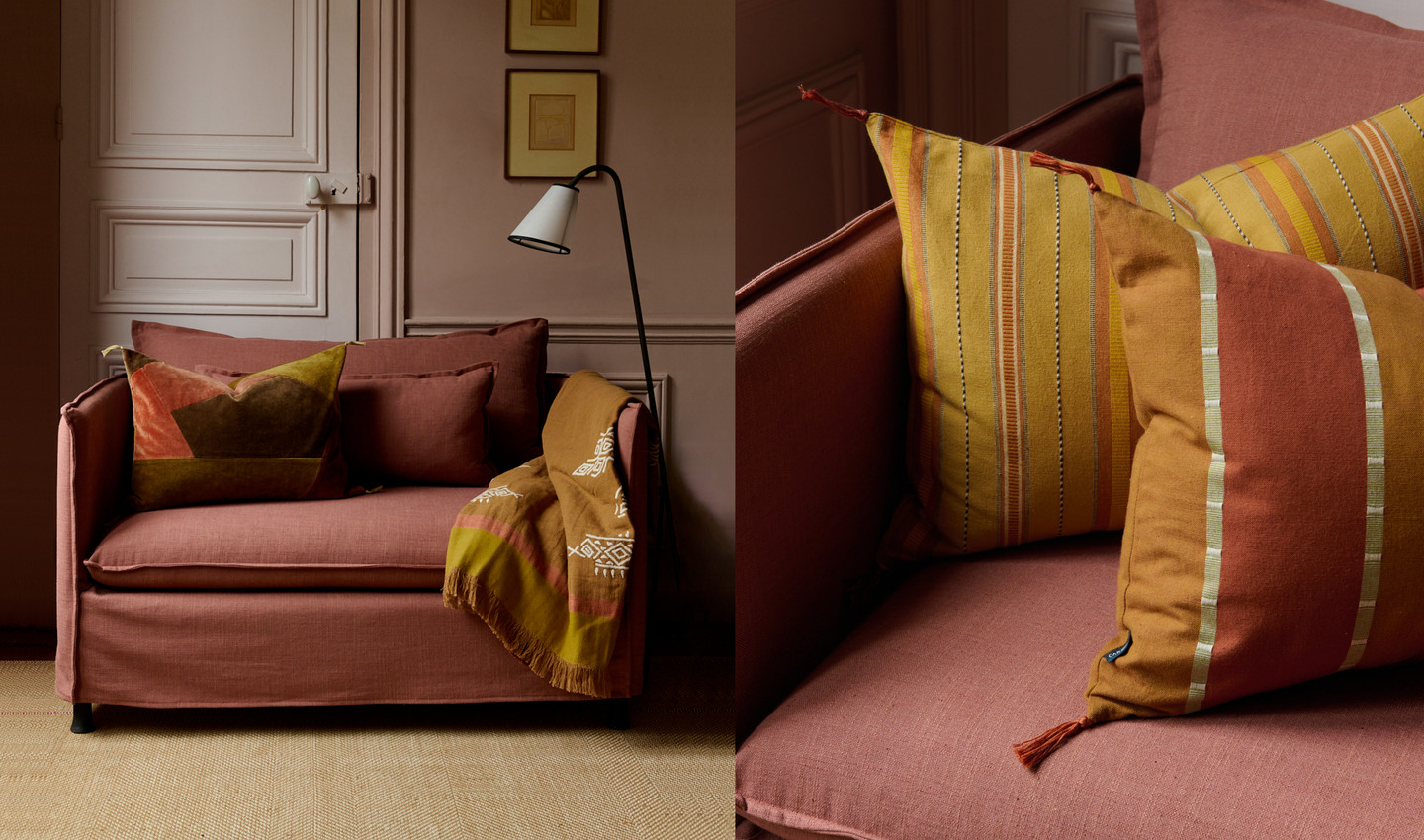 Caravane réinvente l'élégance du quotidien : un canapé accueillant, une lumière tamisée, des étoffes au charme irrégulier. Chaque création raconte une histoire, celle d'une passion familiale pour le fait-main et les matières qui éveillent les sens.