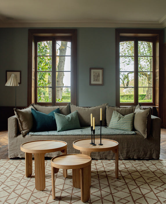 Une âme de mousse et une calotte de plume (70% plumes et 30% de fibres pour l’assise) ou tout en plume… quel que soit votre modèle, sachez qu’il est essentiel que la plume respire, sinon elle se fige.