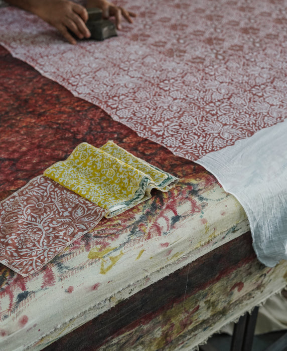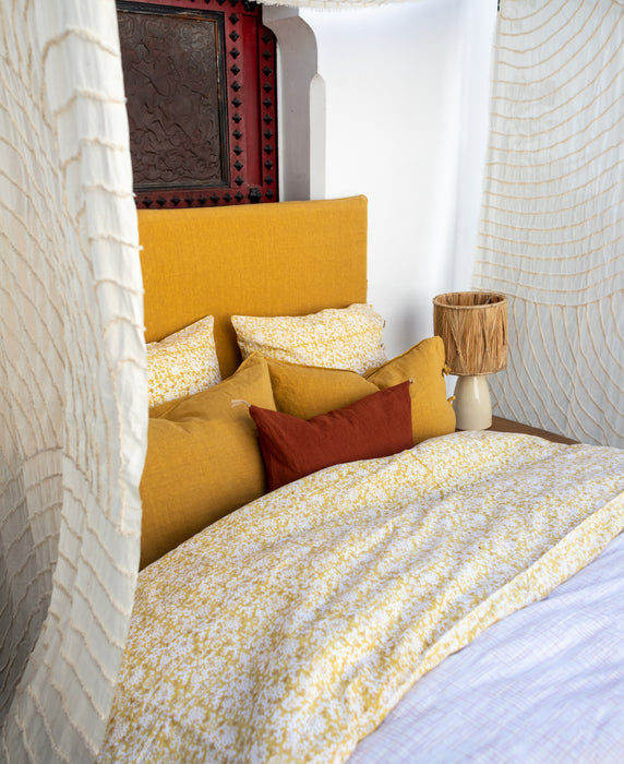 Ils sont imprimés au bloc à la main sans l'utilisation de produits chimiques. Réalisés dans un parc textile écologique près de Jaipur qui promeut des normes socialement responsables et de sécurité tout en favorisant le recyclage de l'eau et le traitement des déchets. Ils sont fabriqués avec des principes éthiques et écologiques, garantissant une expérience de sommeil confortable et responsable.