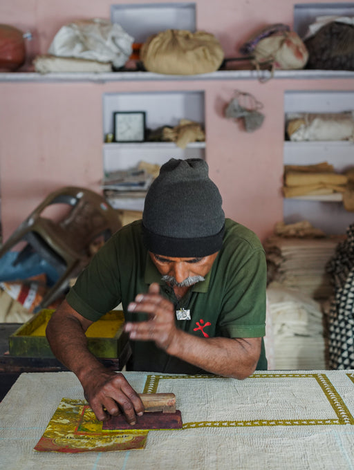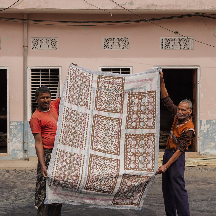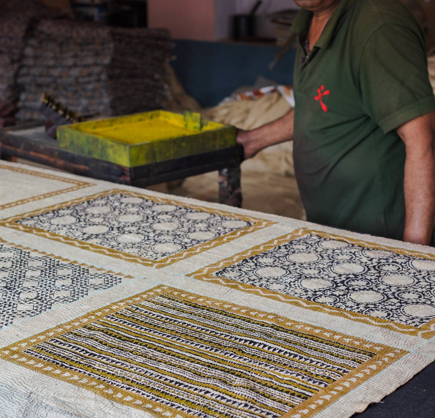 L'histoire commence avec un geste respectueux envers l'environnement. Le set de table en coton Kantha apporte subtilité et harmonie à la table et se combinera à merveille avec les vaisselles Mordorées ou Laurier des gammes Morga, Milky Way ou Ecume.
