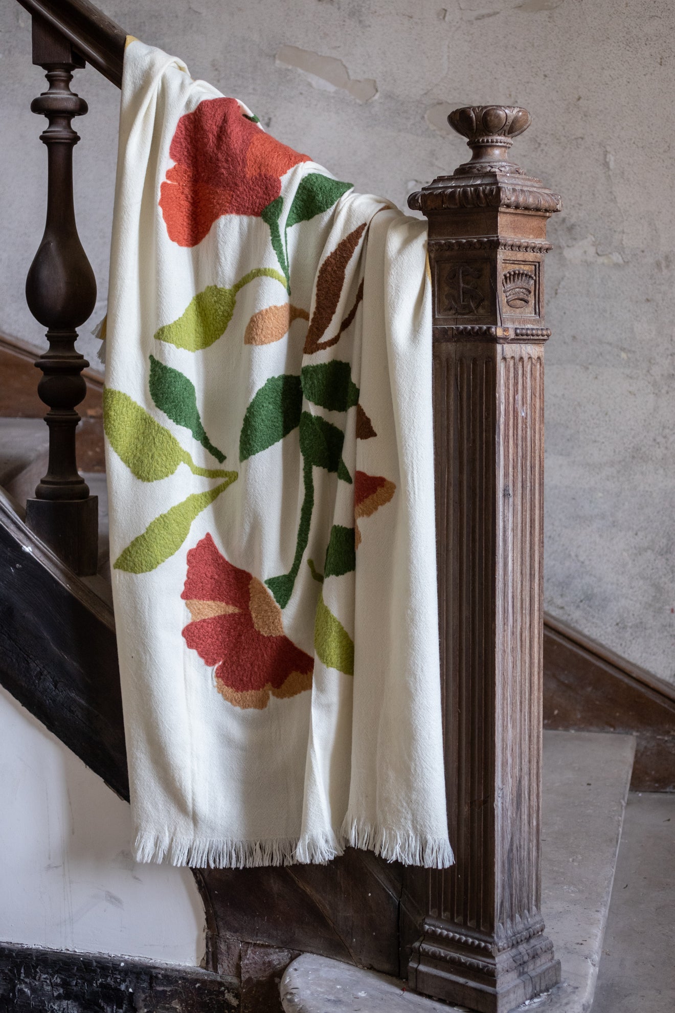 Lena, quant à lui, est un plaid d’une douceur exceptionnelle. La laine, lavée à la main sans aucun traitement, révèle toute la pureté de la fibre. Tissé à la main, il se distingue par d’agiles torsades qui lui confèrent une épaisseur aérienne. Ses teintes naturelles s’entrelacent en un quadrillage chaleureux, bordé d’une lisière douce.