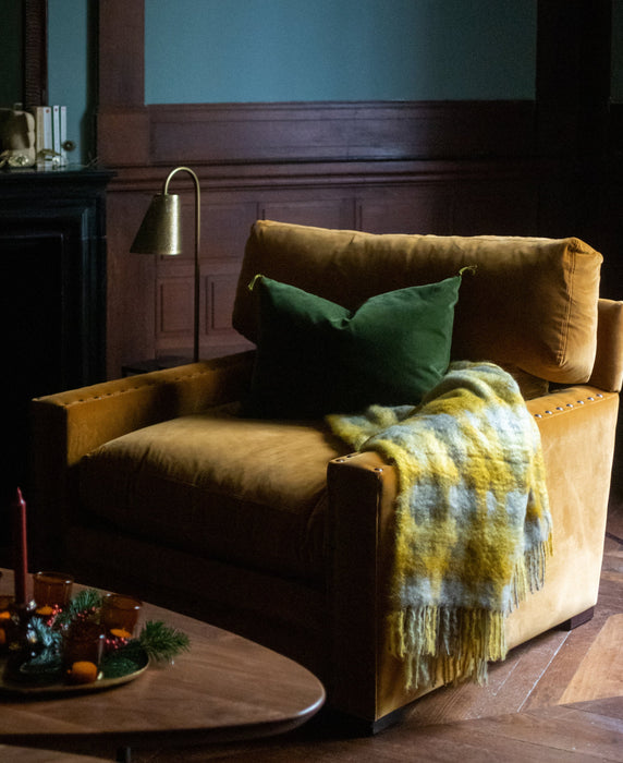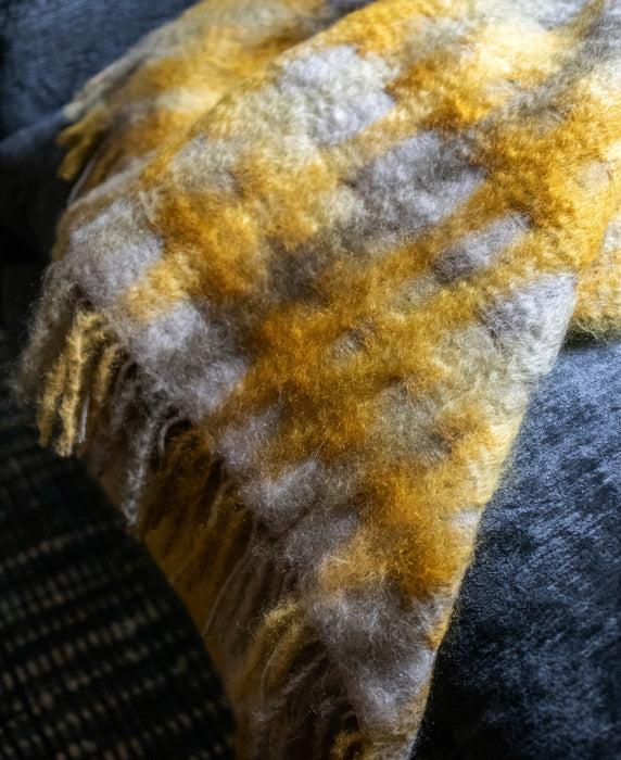 Ce plaid duveteux réchauffe par sa texture très douce et sa couleur ocrée. Composé de mohair et de mérinos, son tissage forme des carreaux légèrement flous. Tendresse, réconfort, chaleur... Et pour ne rien gâcher, une fabrication toute proche, en Espagne, par une entreprise engagée pour la préservation de l'environnement.