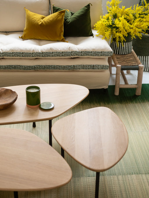 Les tables basses Yomi sont splendides, que ce soit en trio dans un grand espace ou seules lorsqu’un espace plus petit ne le permet pas. Fabriquées entièrement à la main, elles sont en chêne de qualité, apportant à la fois élégance et durabilité.