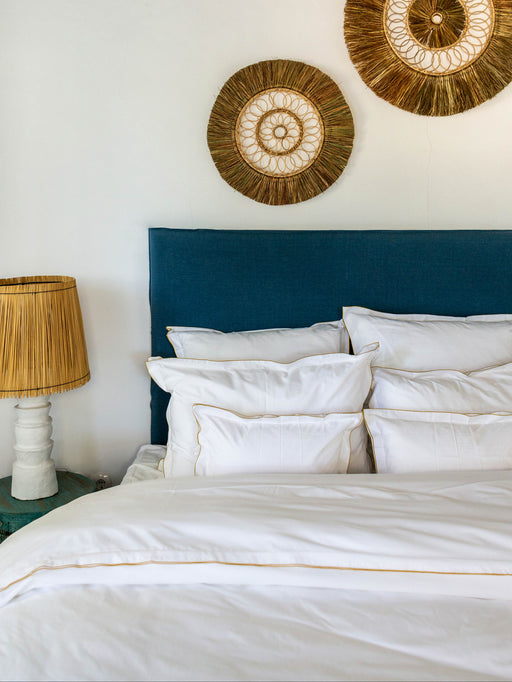 Here's our bedroom version of the Holi range. Succumb to the irresistible offering of this charming duo, featuring a slipcovered headboard and matching bed skirt.