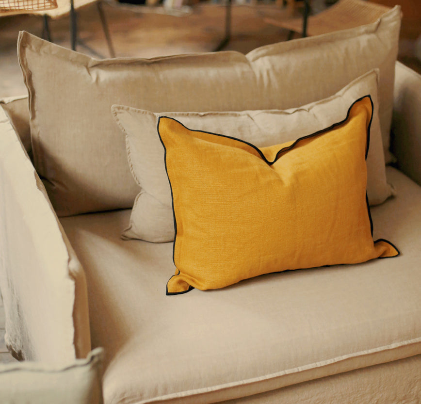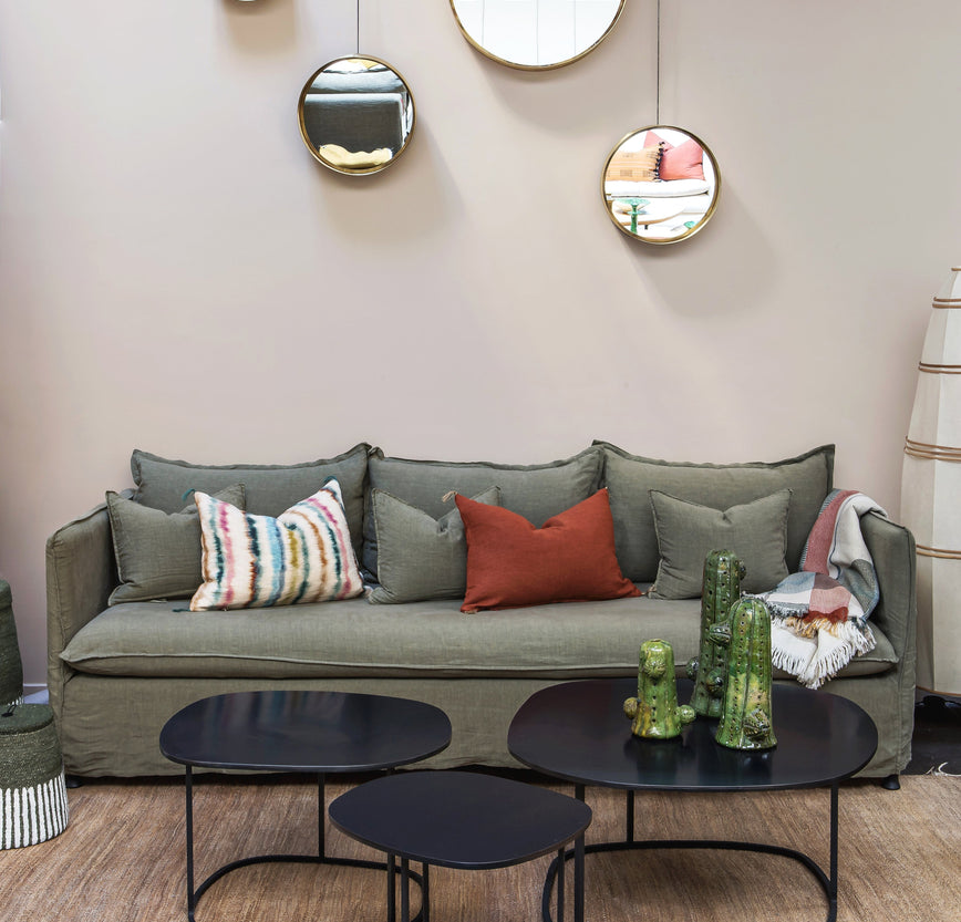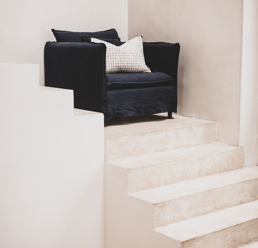 Chaque pièce reprend le langage du canapé : une structure souple, des coussins généreux et une élégance intemporelle.