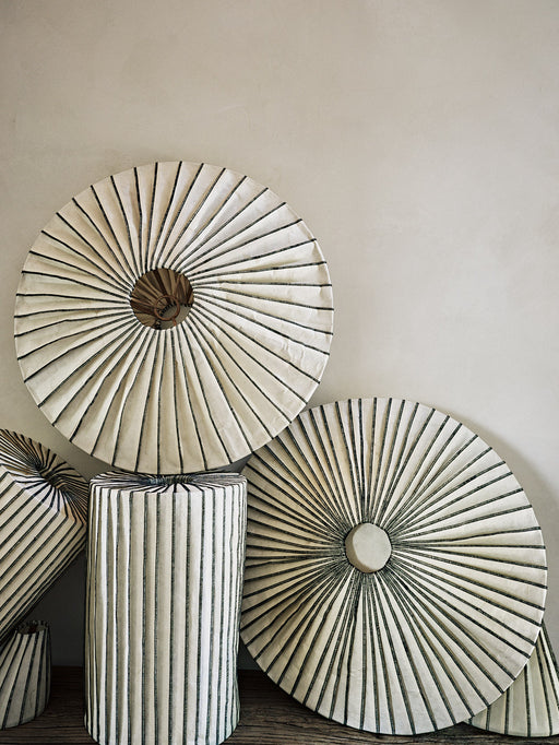 Ellabaco est une nouvelle déclinaison de l'iconique abat-jour Ella, avec un look encore plus artisanal et un jeu de plissés poétique. Nouvelle pépite Caravane, la gamme Baco met à l'honneur la fibre d'abaca issue du bananier, le bambou et le rotin.