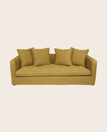 Caravane affirme son exigence en sélectionnant des matières nobles : bois massif, mousse de haute qualité, et juste dosage de plumes qui garantissent un confort d'assise incomparable qui dure dans le temps. Les finitions sont soignées dans les moindres détails : pieds forgés à la main pour certains, percale ou bachette de coton qui protègent et habillent leur structure, ou fine couette de protection d'assise pour les convertibles.