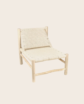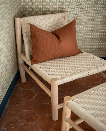 L’eucalyptus est découpé et façonné avec précision, puis le coton est tressé pour offrir une texture agréable et un design distinctif. Cette méthode garantit un fauteuil alliant modernité et confort exceptionnel.