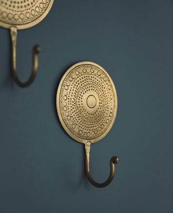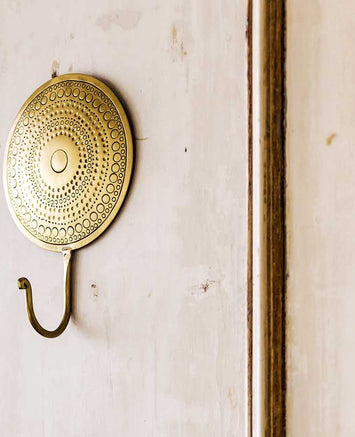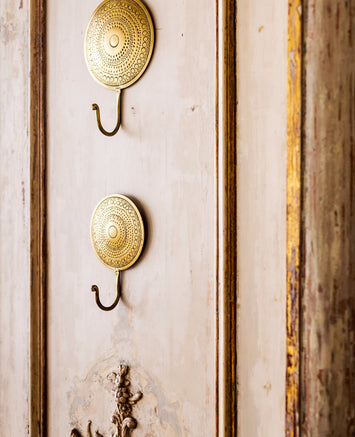La patère Hamaé est une véritable invitation à la douceur, avec son laiton patiné et ses formes délicatement martelées. Elle s’installe là où le quotidien réclame un brin de poésie : dans une salle de bain pour un esprit hammam, dans la cuisine pour apporter un éclat raffiné, dans une chambre pour suspendre une nuisette, ou dans l’entrée pour accueillir écharpes et accessoires.