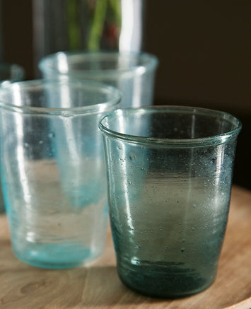 Chaque gobelet est soufflé par des artisans, ce qui lui confère une forme unique et élégante. Leur transparence parfaite et leurs dimensions idéales en font des pièces à la fois fonctionnelles et esthétiques.