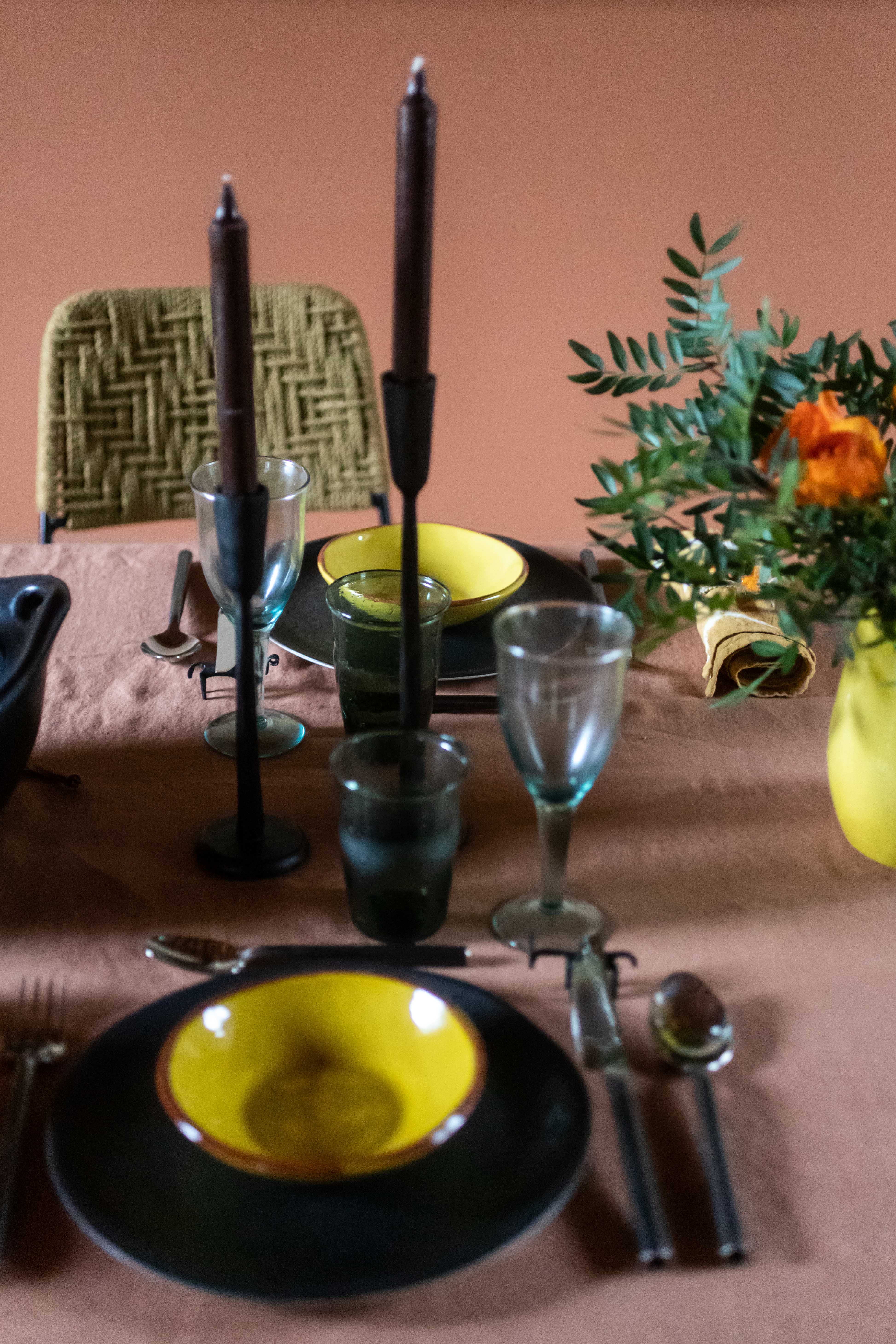 Hera est entièrement modelée à la bouche et à la main. C'est pour cela qu'elle est constellée de charmantes petites bulles. Ce travail artisanal apporte au verre recyclé une texture unique, rafraîchissante. Le souffle de l’artisan façonne sa silhouette gracile. Avec Hera la table respire un air naturel.