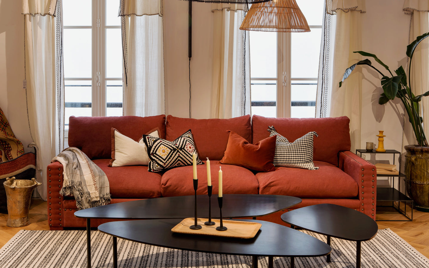 La housse de coussin Leya se distingue par ses motifs fascinants qui allient couleurs vives et teintes profondes.