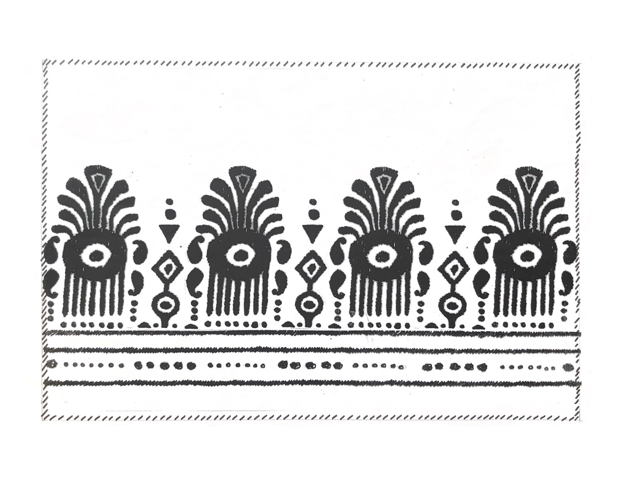 Son imprimé, dessiné à la main, est le fruit d'une inspiration délicate mêlant motifs organiques et géométriques.