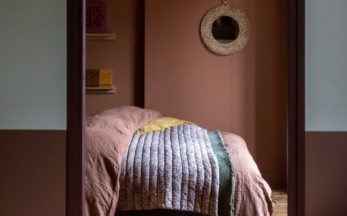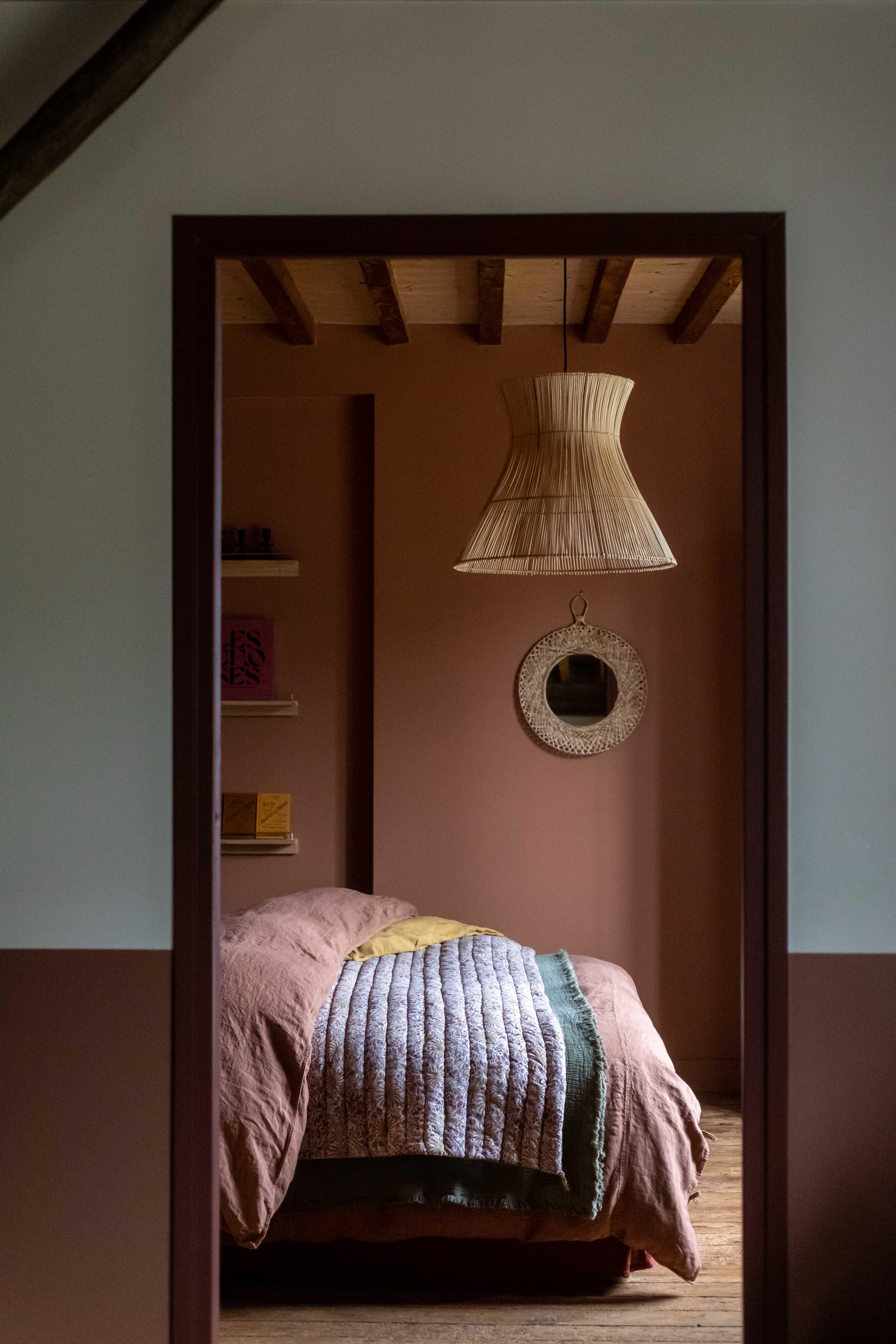 Réside dans l’excellence de son procédé de fabrication. La fibre de lin, noble et naturelle, est récoltée et tissée en Europe. Le tissu est ensuite teint, lavé et adouci, pour lui apporter cette texture délicatement froissée, si voluptueuse. La teinture sur pièce intervient dans un second temps et sur commande, dans notre atelier français : un bain de couleur est savamment préparé, la pièce de lin lavé y est délicatement plongée et s’imprègne doucement de chaque nuance. Les teintures se révèlent au contact de la fibre et offrent un rendu magique : les couleurs vibrent en profondeur. Chaque parure est ensuite minutieusement étudiée par nos soins, afin de s’assurer que la teinte est harmonieuse, même si chacune reste unique et révèle ses propres vibrations.