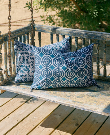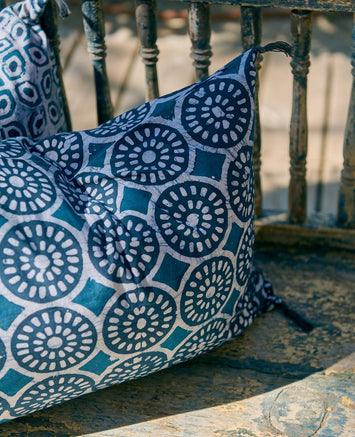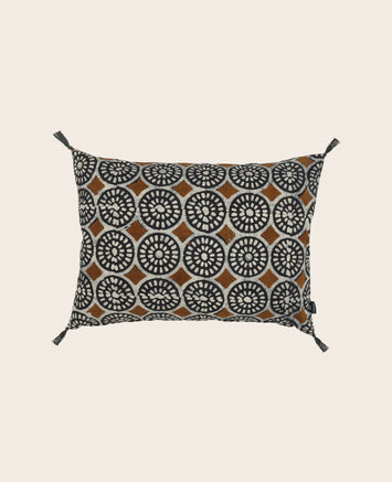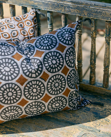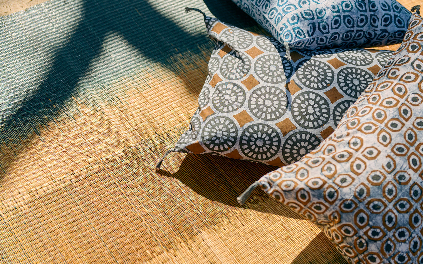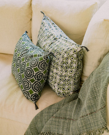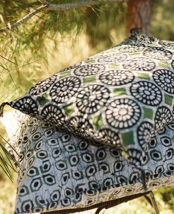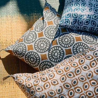 Le processus de design de la housse de coussin Pomelo chez Caravane s'inspire de motifs organiques et géométriques.