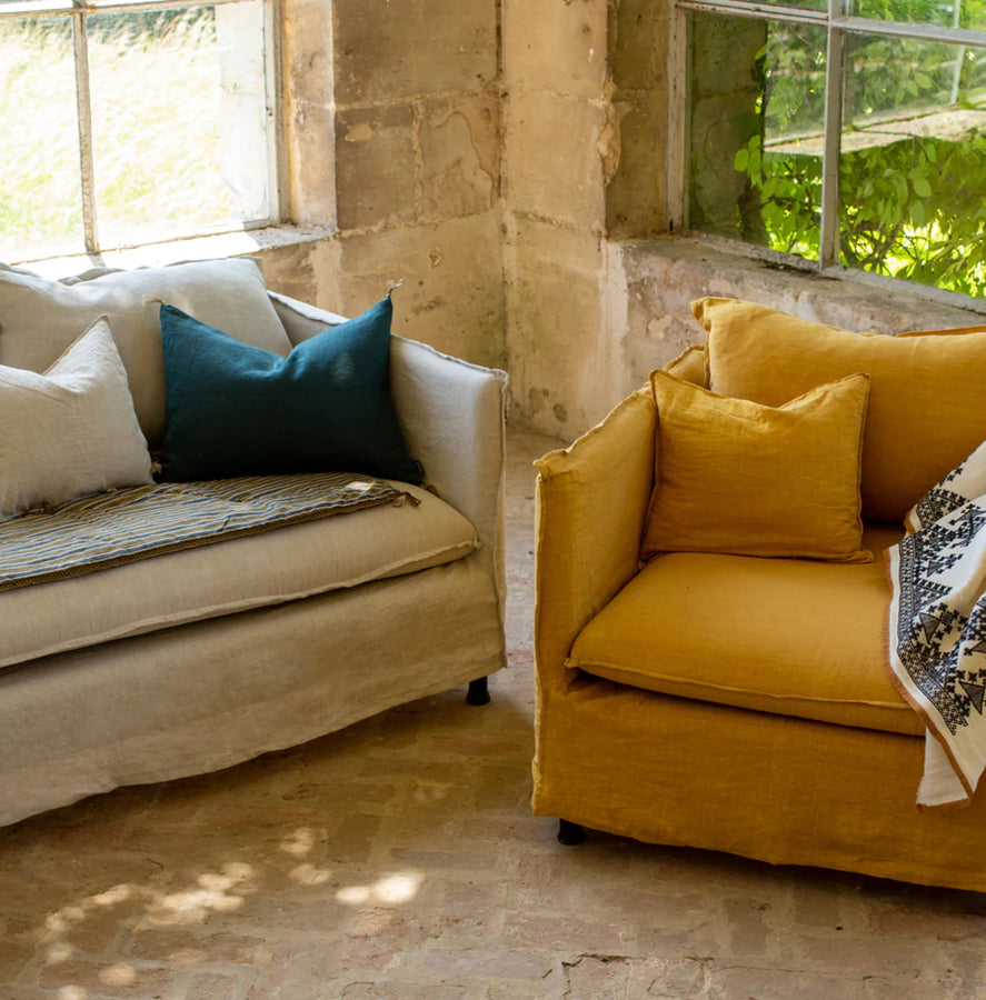 Nos coloramas sont uniques et conçus pour se marier à l'infini en de sages ou étonnantes combinaisons, de l'imprimé audacieux au lin vibrant et intemporel. Nous privilégions les fibres naturelles de qualité et origine européenne. Celles-ci sont transformées par des experts à tous les niveaux de la fabrication, nous utilisons un panel varié de techniques d'ennoblissement qui font vibrer les teintes, leur donnent du relief et un caractère inimitable.
