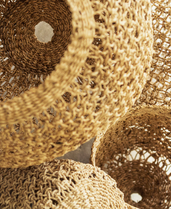 La suspension Balbi est réalisée grâce à une méthode ingénieuse, savant mariage de tradition et de modernité. Il s'agit d'un tressage de fibre de bananier, torsadée puis nouée à la main selon la technique du macramé. Le tissage apporte de la tenue à la fibre, tout en lui offrant une texture souple et légère.
