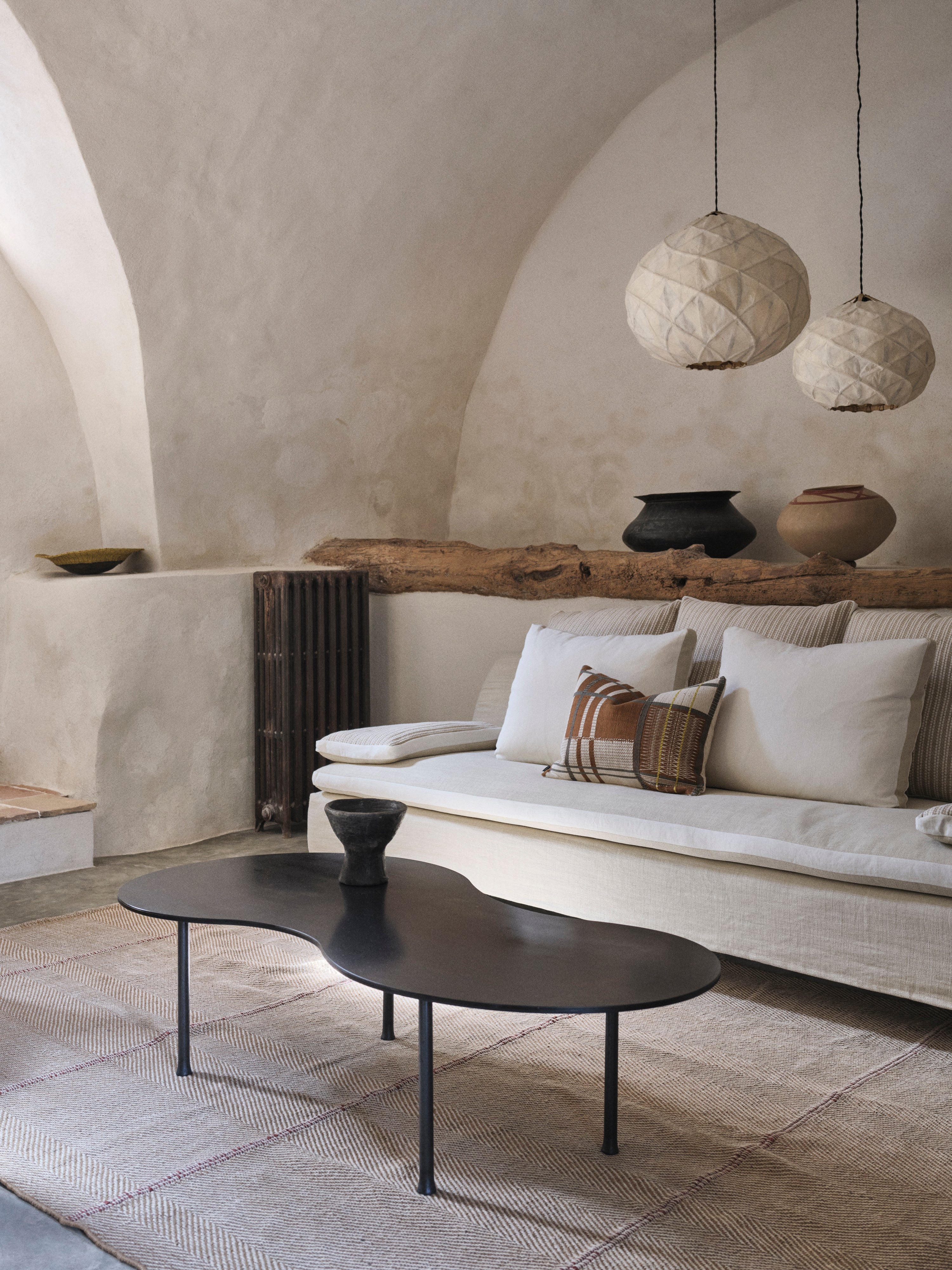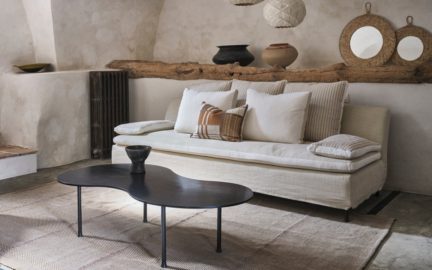 La jute et le lin se mêlent dans ce tapis à chevrons revisités. On retrouve l'esprit Caravane en un coup d'oeil : des rayures irrégulières qui modernisent le motif, un aspect naturel presque brut de la matière et un fond curcuma avec une touche de terracotta qui casse le rythme tout en apportant une pointe de chaleur. À découvrir en quatre tailles, pour trouver celle qui convient le mieux à la pièce qu'il habillera.