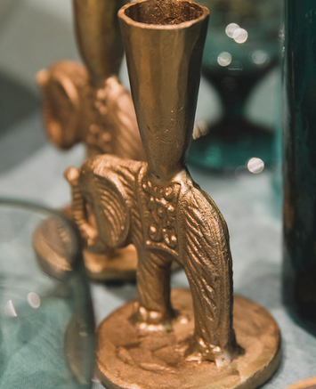 S’il a tant d’aplomb c’est parce que l’éléphant est en fonte, s’il est si léger c’est grâce à sa charmante fantaisie dorée.