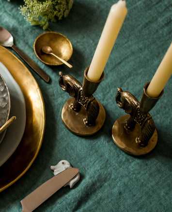 Décoration : bougeoir doré pour chandelle Bougeoir Theena Bougeoir Theena Bougeoir original pour les fêtes Bougeoir doré pour chandelle à la forme originale Table doré pour les fêtes avec bougeoir pour chandelle