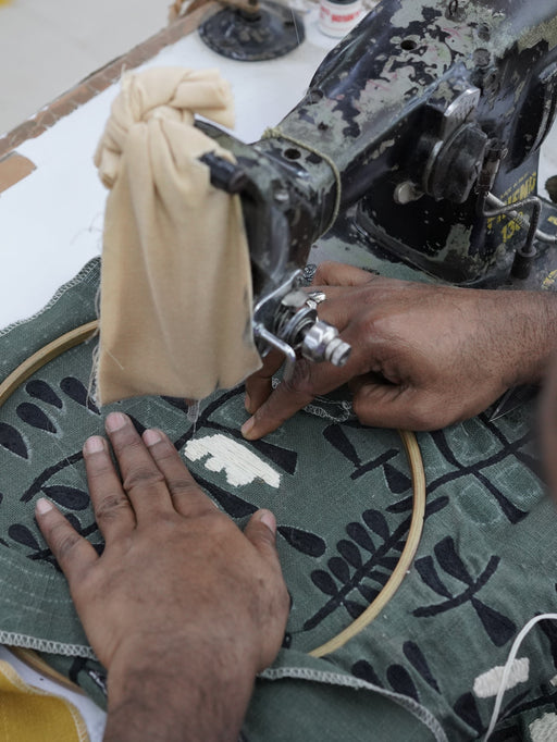 La housse de coussin Vadhi, fabriquée en Inde, est confectionnée en coton de haute qualité, garantissant durabilité et maintien. Sa broderie raffinée, alliant travail de machine et précision manuelle, présente des motifs inspirés de traditions artisanales indiennes. Les teintures naturelles enrichissent les couleurs, assurant un produit à la fois esthétique et durable. Chaque housse est un exemple parfait d’artisanat authentique et de qualité supérieure.