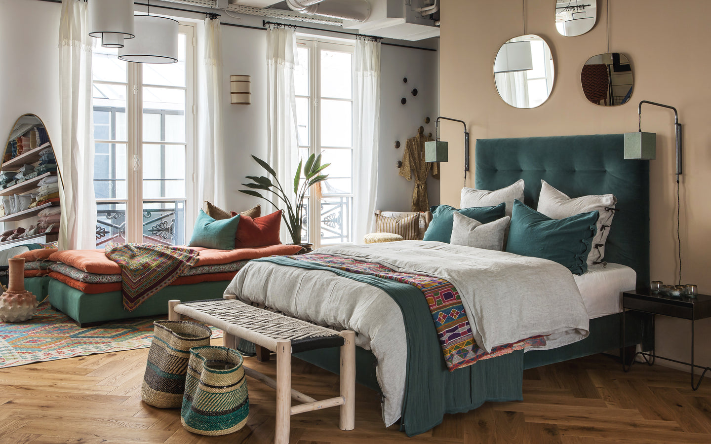 Yuka s’inspire et revisite le traditionnel banc charpoy. Sa beauté réside dans la noblesse des matières qui le composent et le soin apporté à sa fabrication artisanale. C’est surtout sa façon de déjouer les codes qui lui apporte ce charme magnétique. Parce que derrière sa silhouette épurée, presque sage, Yuka est un original... Observez comme il brouille les pistes avec son assise en corde de coton réalisée par des artisans indiens selon les méthodes de tressage traditionnelles, réinventées en vagues géométriques, à l’esthétique si contemporaine. Il se moque des frontières, dressé sur ses pieds en bois d’eucalyptus poncé pour obtenir une jolie teinte claire, aux lignes brutes comme un clin d’œil à l’artisanat d’Afrique du Nord. Il sait s’octroyer une place unique grâce à ses proportions atypiques : bout de lit ou de canapé, mais aussi en table d’appoint..