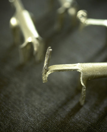 Chaque pièce de ce set de quatre porte-couteaux en acier brut a été réalisée à la main. Un bestiaire poétique, aux lignes pures, d’une simplicité déroutante. Incontournable de la marque Caravane, Zou se décline désormais en teinte dorée, lumineuse. Elle se niche toujours dans sa fine pochette de coton.