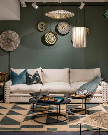 Les courbes accueillantes des canapés Mira trouvent leur écho dans la silhouette sculpturale de notre nouvelle lampe à poser Rosha. Un salon pensé pour illuminer vos moments partagés.